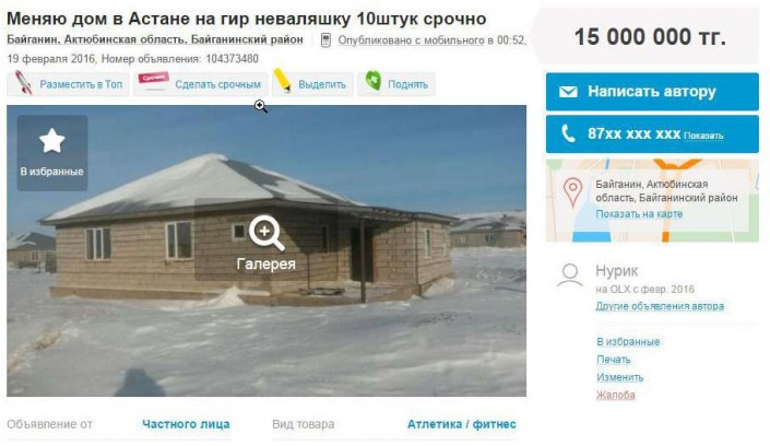 Житель поселка Баскудук рассказал "Ладе", что наткнулся на объявление о покупке гирь за баснословные деньги и решил разбогатеть. "Я две гири купил - одну за 40 тысяч тенге, другую за 55 тысяч тенге - у знакомых. Хотел за 10 тысяч долларов продать их потом через Интернет. Еще две гири мы с племянником в степи выкопали. Раньше их закапывали в землю и привязывали к ним верблюда, чтобы тот не ушел. Они там уже лет пять лежали, мы раскопали", - говорит коммерсант.