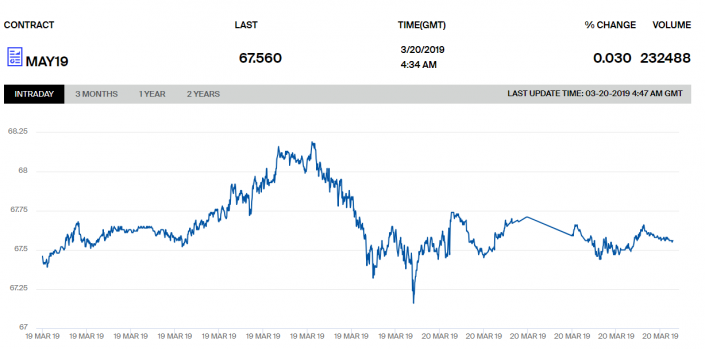 Цена на нефть марки Brent составляет 67,56 доллара за баррель.
