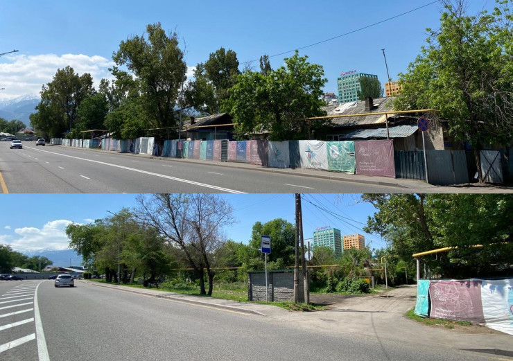Как рассказала одна из жительниц Алматы, квадрат улиц Гагарина - Аль-Фараби - Розыбакиева - Кожабекова раньше был заполнен частными домами. Однако в 2006 году здесь начался массовый снос ветхой недвижимости. Вместо старых зданий на этом месте планировали возвести современные жилые комплексы.