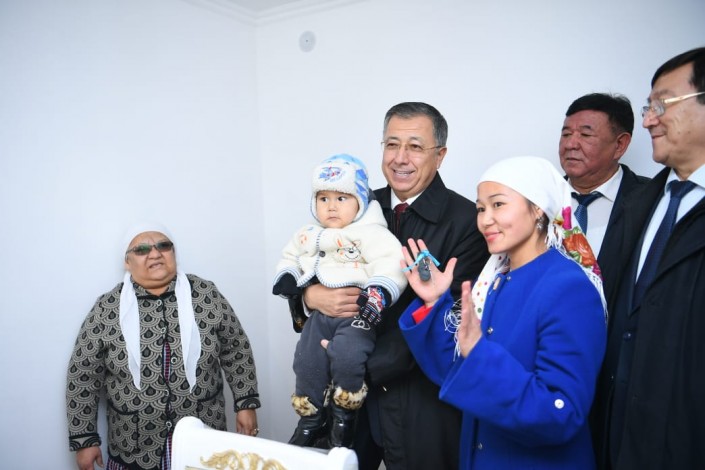 После поездки в Ордабасинский район аким области посетил с рабочим визитом Кентау, где в торжественной обстановке вручил новоселам ключи от новых квартир. В частности, в этот день в селе Старый Икан сдали в эксплуатацию служебный двухэтажный жилой дом на 10 квартир, а в селе Ынтымак сельского округа Шага - два жилых дома на 10 квартир каждый. В целом в этот день в Кентау новоселье отметили 30 семей.