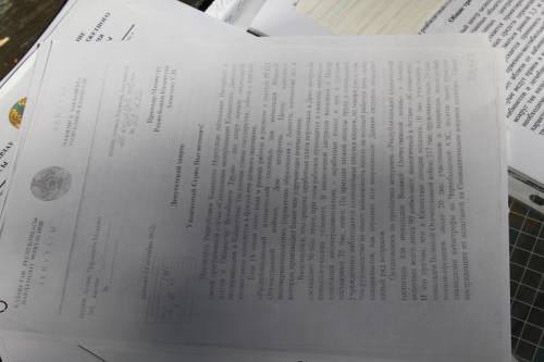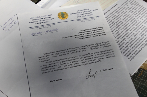 Они заявили, что Минздрав "кормит их завтраками". Глава координационного совета ветеранов войны в Афганистане Мурат Абдушкуров показал собравшимся толстую пачку бумаг, в которой была собрана переписка с госорганами.