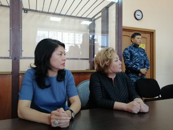 Эльмира Суханбердиева (справа) и ее адвокат Айгуль Амренова. Фото Tengrinews.kz