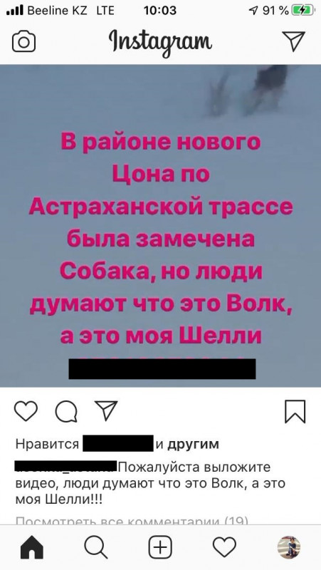 Рассылка начала распространяться среди астанчан 23 января. В ней говорится, что на камеру попала стая волков в районе спецЦОНа.