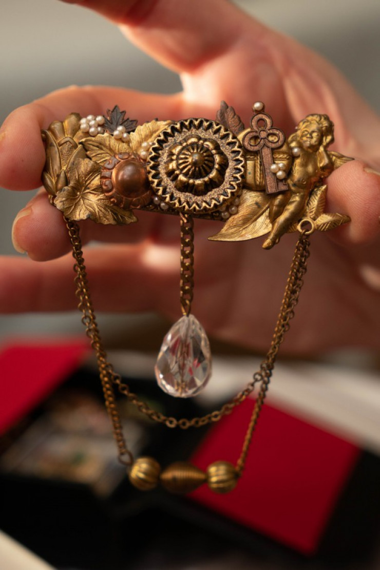 "А вот эта брошь от американской фирмы Sarah Coventry, основанной в 1949 году, они выполняли украшения в форме солнца. У меня таких несколько. А это моя любимая от Joan Rivers, или Александры Молински, дочери еврейских эмигрантов из России. Она родилась в Америке, была телеведущей, актрисой и одно время увлекалась созданием брошей", – рассказывает коллекционер.