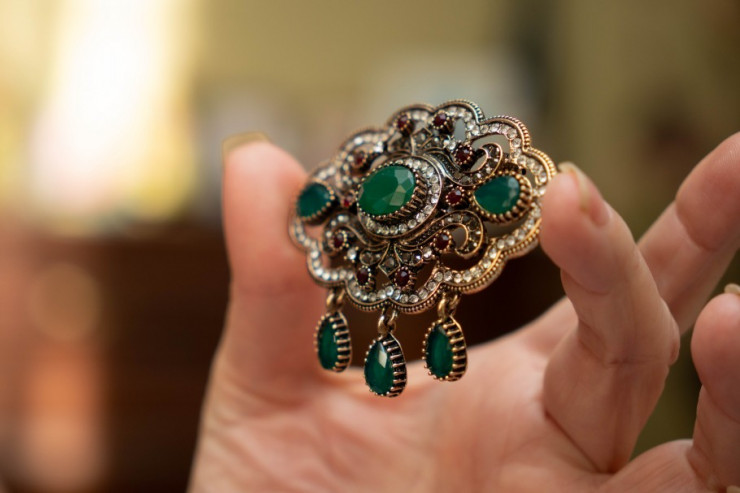 "Я как-то заказала на AliExpress брошь в турецком стиле, а она оказалась маркированной. С такими метками изделия считаются ценными. Еще хочу напомнить, что вещи, которым более 30 лет, относятся к винтажу. Все, что старше 90 лет, – это уже антиквариат", - показывает другое украшение собеседница.