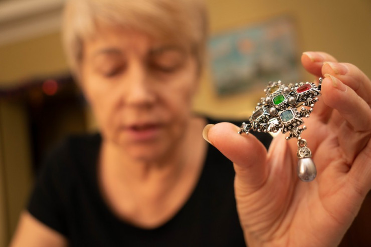 "Это английская брошь, камни при естественном освещении особо не мерцают. Гораздо лучше изделие смотрится при искусственном свете", – объясняет Наталья и прикладывает украшение к рубашке.