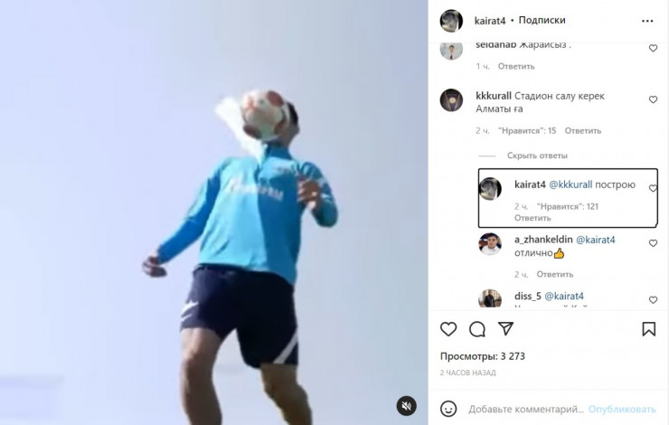 Владелец алматинского клуба, отвечая на вопросы подписчиков, написал об этом в комментариях под своей же публикацией в Instagram, посвященной переходу Нуралы Алипа в "Зенит".