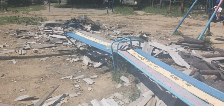 Без крыши в буквальном смысле слова остались и жители пятиэтажки № 26, которая находится в 21-м микрорайоне Пришахтинска. У них ураган повредил полностью всю кровлю и снес на детскую площадку рядом с домом. Сейчас жители боятся дождя, так как он может полностью затопить многоэтажку.