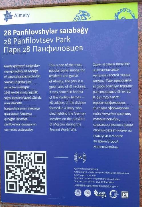 О табличке в алматинском парке имени 28 гвардейцев-панфиловцев заговорили в социальных сетях. Люди бурно обсуждают ошибки, допущенные авторами в тексте. В Управлении туризма города пообещали в скором времени ее заменить.