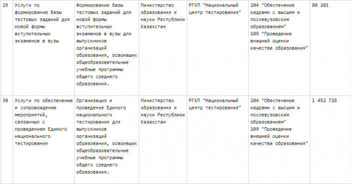 Еще 80,2 миллиона тенге выделяется на услуги "по формированию базы тестовых заданий для новой формы вступительных экзаменов в вузы".