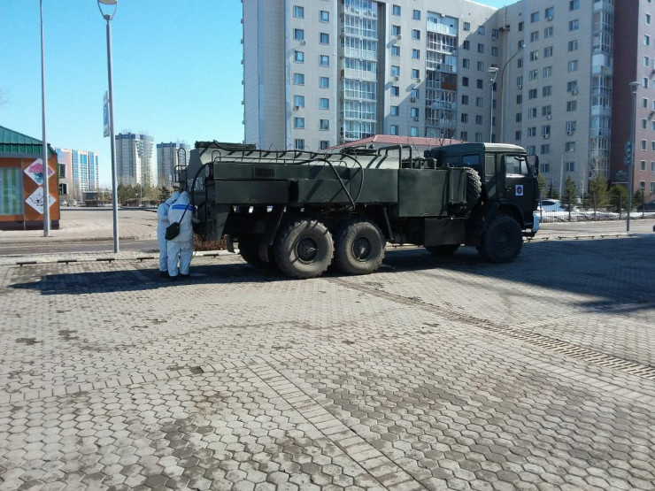 Как военные обрабатывают места скопления людей в Нур-Султане