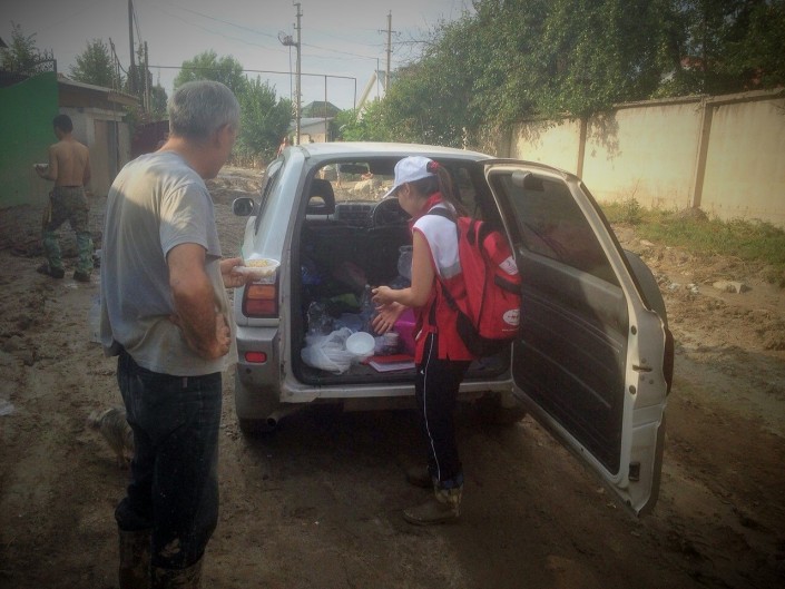 Активист Ильяс Мухамеджан рассказал, что на место ЧП по собственной инициативе приезжают много людей, целыми семьями, с детьми. На месте работают около 100 человек. Они находят заваленные грязью дома и помогают его жителям. Между тем, существует ряд сложностей. "Некоторые улицы до сих пор завалены камнями. Туда трудно пробираться. Вчера вечером заезжали на такую улицу, отвозили им воду и горячее питание. Там уже три дня до них никто не может добраться. Люди сидят без света, газа, воды", - рассказал собеседник.