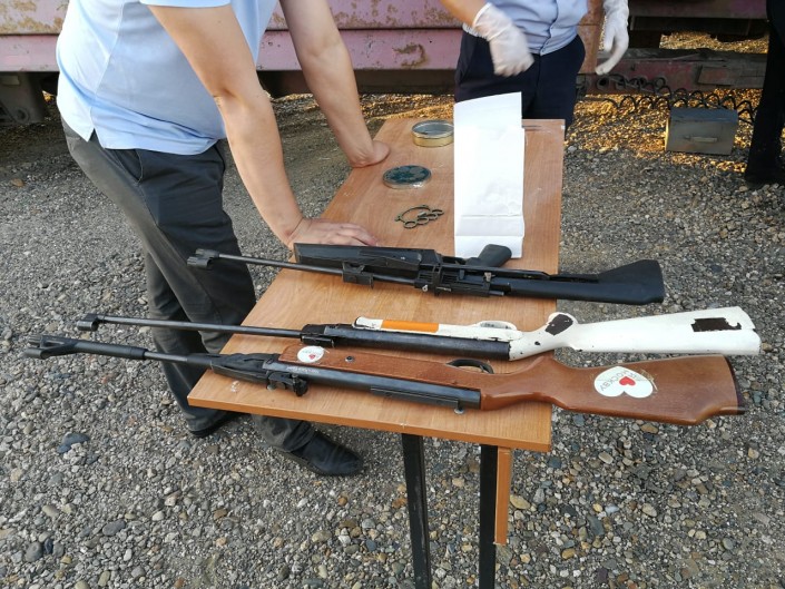 Простреленные и переоборудованные под учебные патроны: 30 штук к АК-74, шесть штук 7,62 миллиметра. Шесть лент к ПК на шесть патронов. Боевые патроны 5,45 миллиметра - пять штук, 9 миллиметров - две штуки. Со слов казахстанца, все оружие является учебным", - отметили в пресс-службе ПС КНБ Казахстана.