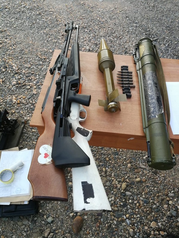 "Военнослужащими военной части № 2098 в отделении транспортно-пограничного контроля "Ауыл авто" 19 июля 2019 года в 15.30 был задержан гражданин Казахстана, следовавший из Казахстана в Россию. При досмотре автомашины в кузове среди домашних вещей были обнаружены: советская реактивная противотанковая граната - РПГ-18, выстрел РПГ-ПГ-7 (ручной противотанковый гранатомет), три магазина к АК-74, один к РПК-74, один ВПХР (войсковой прибор химической разведки), два ДП-5В (измеритель мощности дозы (рентгенометр).