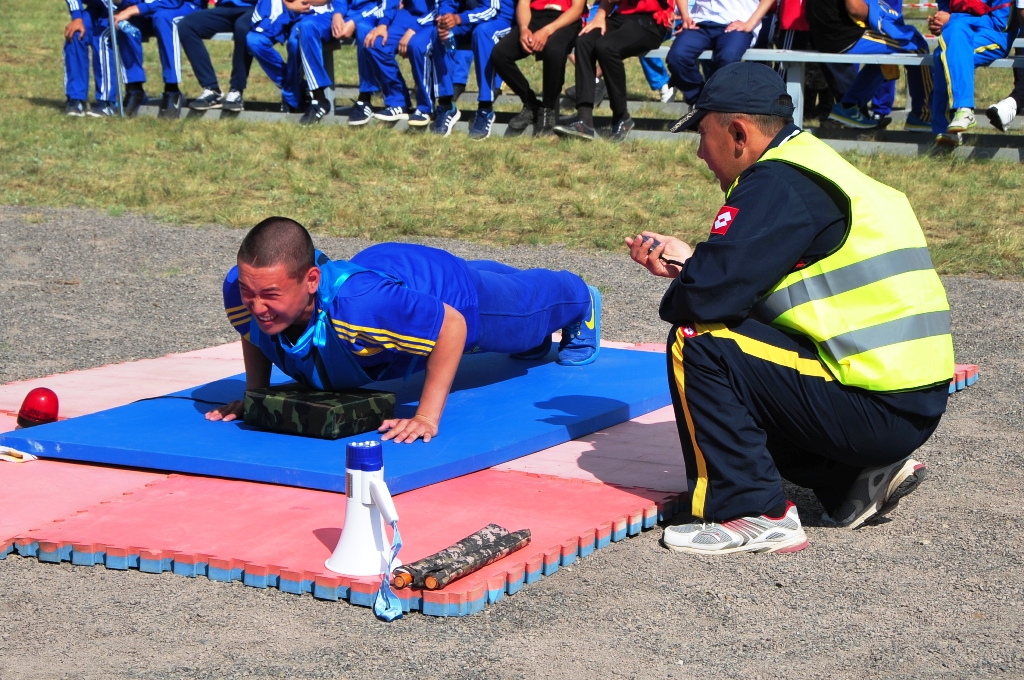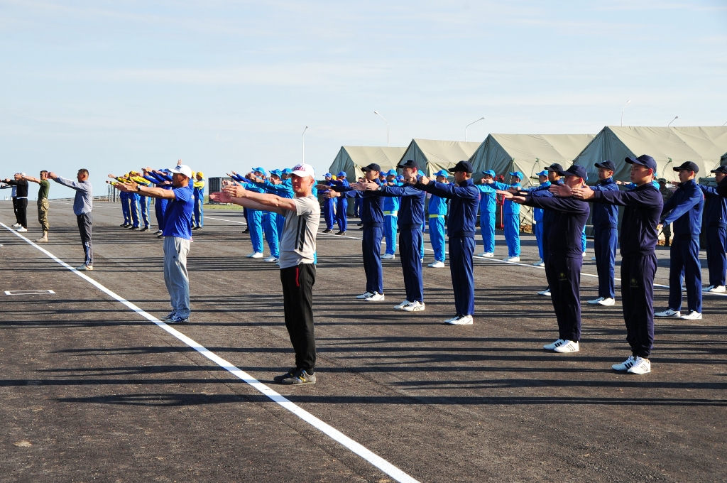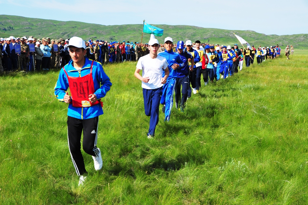 "С раннего утра на учебном полигоне многолюдно - после подъема в 7 утра по сигналу горна, зарядки и завтрака юноши и девушки со всего Казахстана собрались, чтобы показать свои спортивные достижения по отжиманию, подтягиванию, бегу, прыжкам в длину, перетягиванию каната и другим дисциплинам", - рассказали в пресс-службе Минобороны.