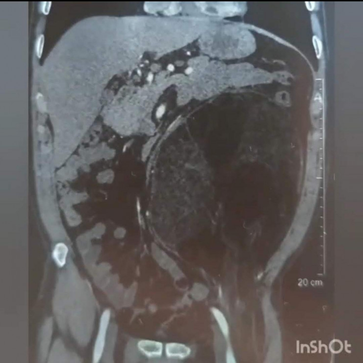 52-летний пациент обратился в городскую больницу скорой неотложной помощи (ГБСНП) с жалобами на боль и тяжесть в брюшной полости. По словам пациента, год назад он заметил, что живот стал увеличиваться, но никакого дискомфорта и боли не чувствовал до последнего. Как только это изменилось, обратился за помощью к врачам.