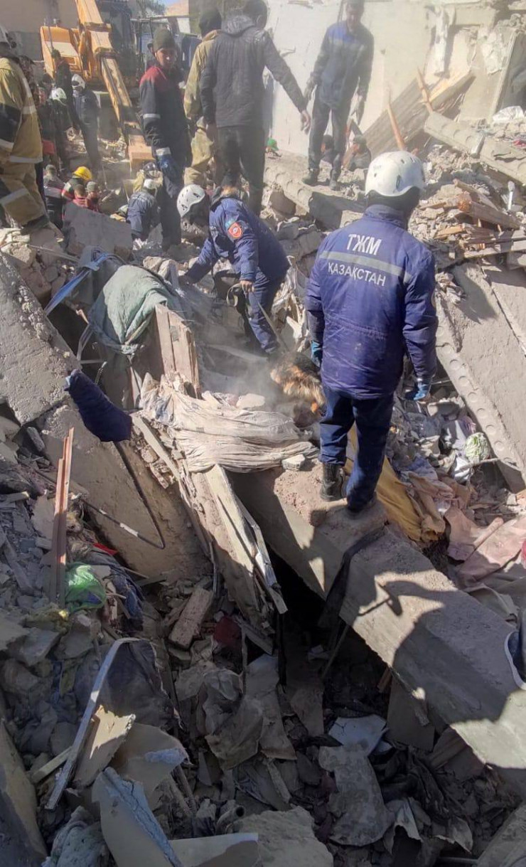 Взрыв в Жанаозене: появилось видео с места обрушения подъезда дома Фото: МЧС РК