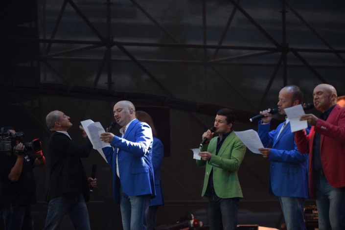 Артисты исполнили две казахские песни "Аулым" и "Көзімнің қарасы". Также вы их исполнении прозвучала песня Батырхана Шукенова "Джулия". Артисты в буквальном смысле устроили караоке, исполняя все известные хиты из кинофильмов, песни известных артистов современности и народные песни. Пришедшие на концерт гости и жители столицы подпевали артистам.