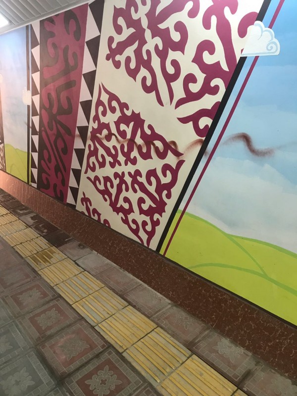 Хулиган изрисовал стены отреставрированной подземки в Алматы Фото ©Турар Казангапов