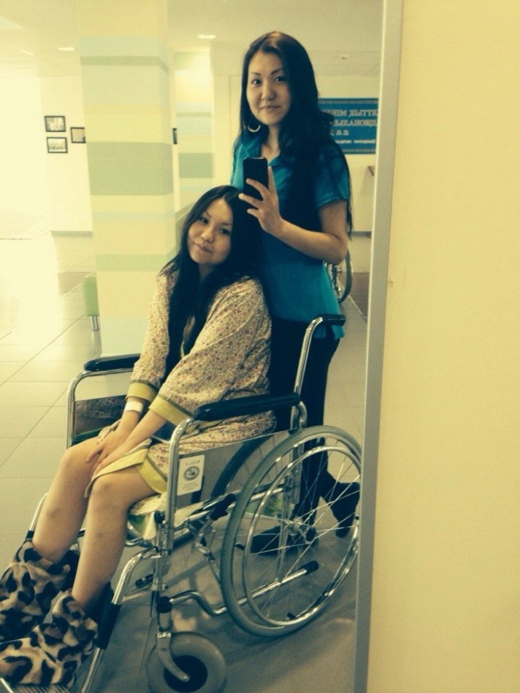 Экстренно мы поехали в Астану на операцию. У меня начались очень сильные боли, буквально за два дня, пока мы искали средства для того, чтобы сделать операцию, мне становилось только хуже. Когда мы приехали в Астану, у меня уже пропала чувствительность в области живота, спины. Я уже не чувствовала свои прикосновения к животу. Хирург не смог меня взять, так как у меня был очень низкий гемоглобин. Меня отправили домой. Мы поднимали гемоглобин, и с каждым днем становилось все хуже. Мама кормила уже с ложки, потому что у меня терялись силы в руках.