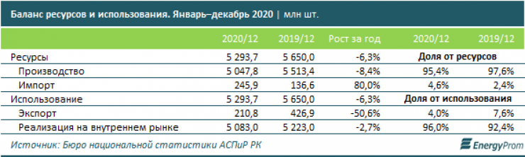 За январь – декабрь прошлого года фермеры Казахстана перекрыли спрос (реализация на внутреннем рынке плюс экспорт) на яйца на 95,4 процента против 97,6 процента годом ранее. При сокращении производства за этот период импорт вырос в 1,8 раза до 245,9 миллиона яиц.