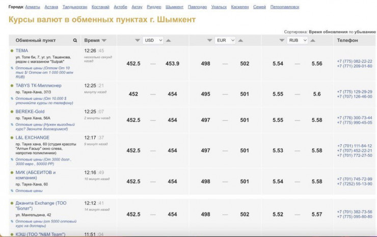 USD - 452,5 тенге на покупку, 454 тенге на продажу;