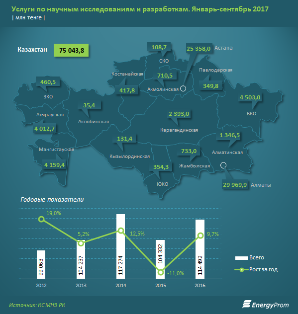 Зарплата научных работников в Казахстане выросла в течение года на фоне повышения объема услуг в сфере исследований и разработок. Об этом сообщается в исследовании Energyprom.kz.