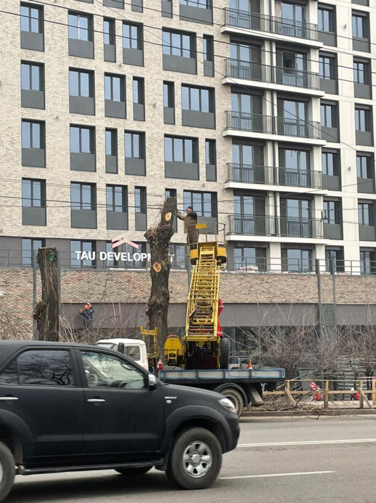 "Закрывали вывеску". Тополя незаконно вырубили возле новостройки в Алматы