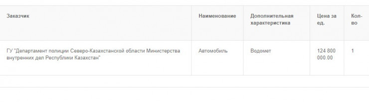 Напомним, на сайте государственных закупок появилось объявление о закупке автомобиля с водометной установкой полицией СКО. Цена лота - 124,8 миллиона тенге.