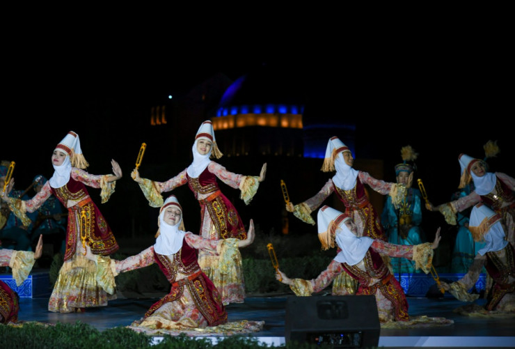 На торжественном вечере в Ботаническом саду, возле исторического мавзолея, выступил оркестр казахских народных инструментов имени "Сугир" областной филармонии имени Ш. Калдаякова, а также артисты театра "Астана Балет" и известные певцы.