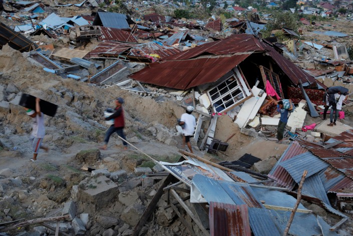 Район Балароа индонезийского города Палу. Пострадавшие разбирают завалы и забирают свои вещи, уцелевшие после землетрясения.