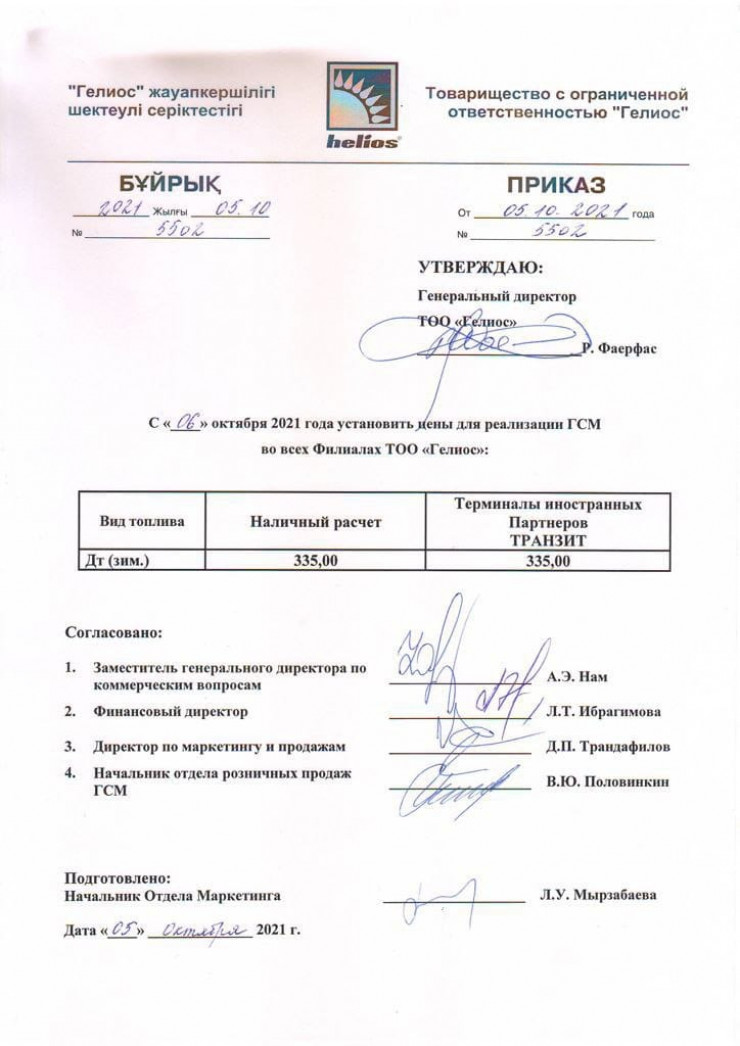 Зимний дизель по 335 тенге - в Helios прокомментировали рассылку документа
