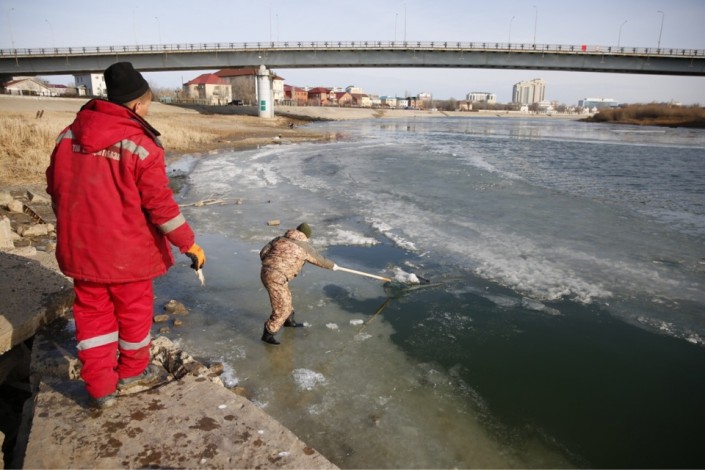 В Атырау очищают Урал от мертвой рыбы