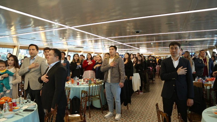 Торжественное мероприятие, прошедшее на корабле "Валиде Султан" стамбульского муниципалитета Ускюдар, началось с исполнения государственного гимна и продолжилось концертной программой, а также интеллектуальными играми. Казахстанцы в теплой атмосфере дружно исполнили патриотические песни.