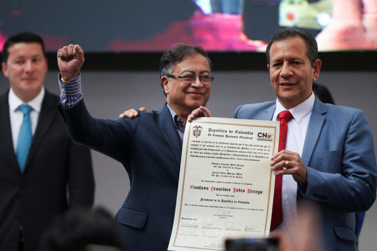 Судья Национального избирательного совета (CNE) Сезар Абрео Мендес и регистратор Александр Вега вручили Петро документ, подтверждающий его полномочия в качестве президента с 7 августа сроком на четыре года.