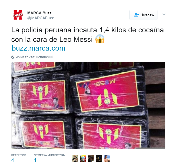 Кокаин с изображением Месси на 85 миллионов долларов изъяли в Перу Фото с сайта fakty.ictv.ua