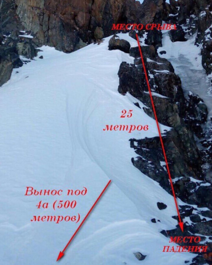 "Мы дошли до площадки. Сашу уже не было видно за перегибом, еще один наш товарищ Дима находился в 25 метрах выше меня на страховочной станции. Мы должны были проходить этот участок в связке, но я решила пройти его на жумаре (элемент снаряжения для подъема по веревке - прим. автора). Попросила Диму закрепить веревку и начала движение вверх. Уже на станции я совершила недопустимую ошибку. Прежде чем встать на самостраховку, я выщелкнула жумар, и именно в этот момент Айдар, шедший за мной, сделал пару шагов по склону и сорвался.