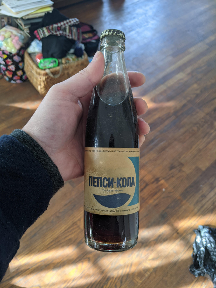 Именно такую пепси-колу продавали в СССР в 1980-е годы, отмечает издание. Как оказалось, в то время отец автора поста работал на компанию "Пепси". Тот решил сохранить на память бутылку советской газировки. Так она и стояла в спальне, пока ее не обнаружили.