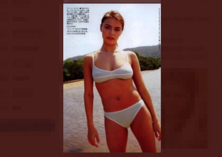 Издание отмечает, что тогда спортсменка с мировым именем была очень любима японской публикой. На снимке юная Кабаева позирует в белом полупрозрачном бикини на пляже.