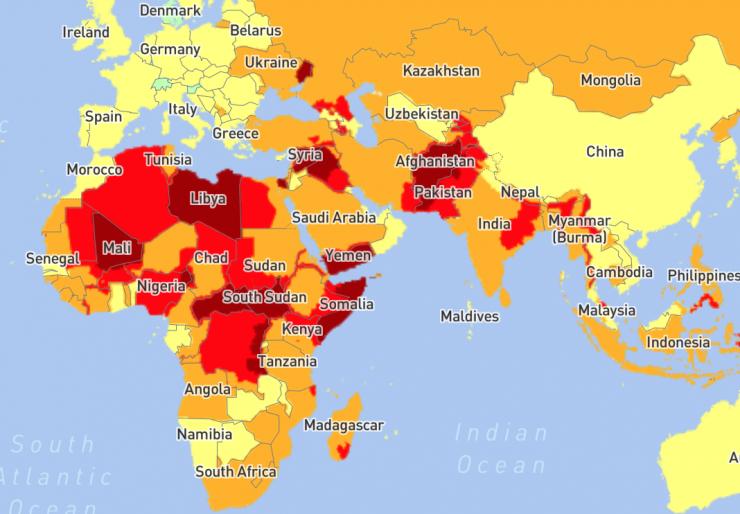 По обновленным данным, самыми опасными странами являются Ливия, Сирия и Афганистан.