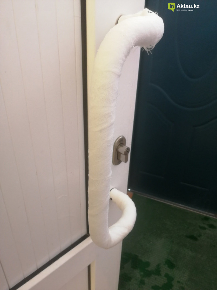 В одном из детских садов Актау придумали "ноу-хау" для борьбы с вирусами - все дверные ручки обмотали тряпками, смоченными в хлорке, сообщает инАктау.