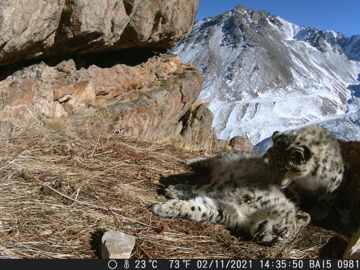 Детеныши снежного барса редко попадают на фотокамеры, поэтому экологи считают удачей возможность разглядеть через фото жизнь краснокнижных животных.