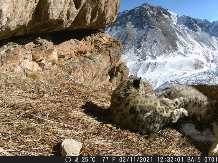 Установленная в соседнем ущелье фотоловушка весной этого года сняла другого снежного барса:
