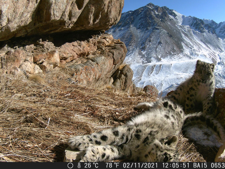Резвящиеся снежные барсы попали на камеру в горах © facebook/baiboosun.naturereserve