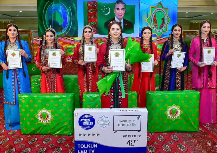 Согласно первому заданию студентки продемонстрировали достижения нашего времени, уважение к туркменским женщинам и девушкам, а также свою способность к искусству и творчеству, продемонстрировали свое мастерство в исполнении восторгающих слов, песен, стихотворений, а также театральных сценок с монологами.