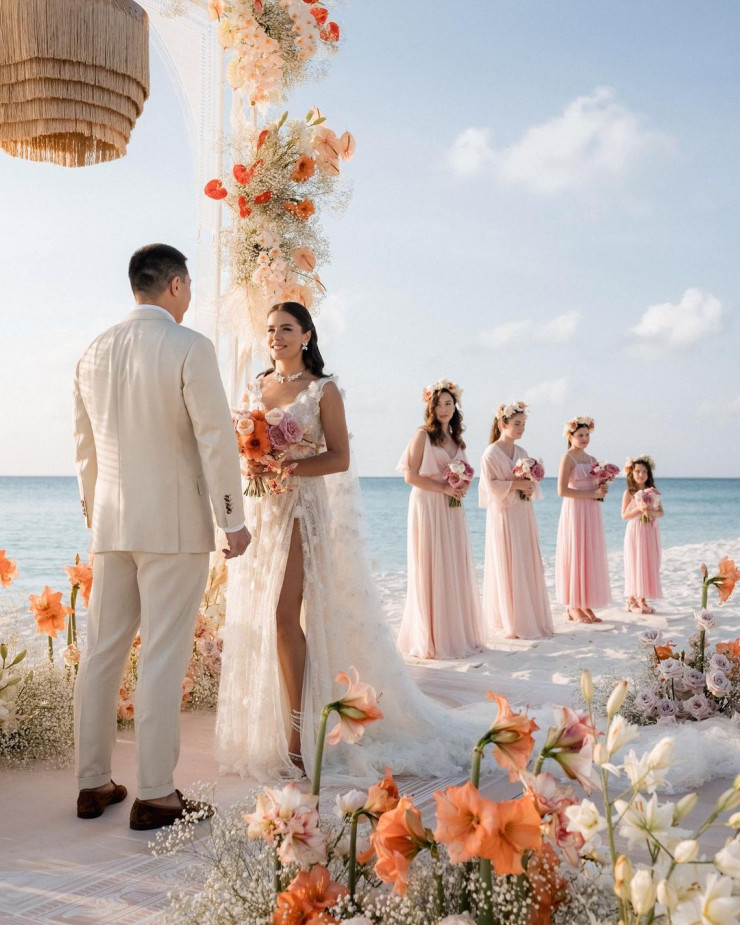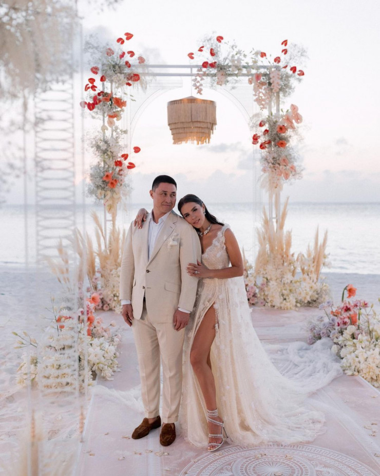 По информации украинского издания, бизнесмен оплатил "все прихоти" невесты, включая церемонию на Мальдивах и свадебное платье от ливанского дизайнера Жорджа Хобейка.