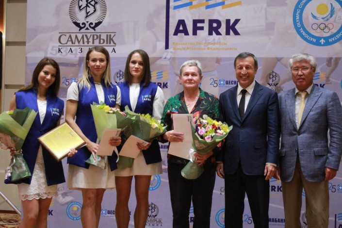 "Хочу поздравить Вас с победами на чемпионате Азии. Вы показали хорошие результаты и заняли третье место в общекомандном зачете. Завершили турнир с восемью медалями. Это результат Вашего труда и результат поддержки со стороны Главы нашего государства Нурсултана Абишевича Назарбаева. Государство поддерживает развитие спорта, в общем, и легкой атлетики, в частности. Желаю Вам здоровья и успехов. Надеюсь, что мы и в будущем будем отмечать вместе Ваши победы", - заметил президент федерации легкой атлетики Адильбек Джаксыбеков.