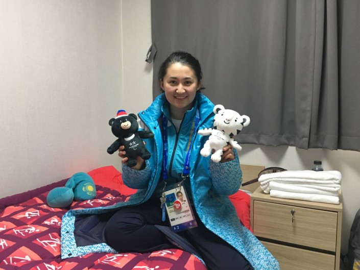 Для 22-летней спортсменки это уже вторая Олимпиада. Из Казахстана в Южную Корею Алдабергенова привезла курт, а также захватила самолетную подушку в цветах флага.