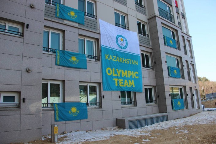 В Пхенчхане казахстанские спортсмены соседствуют с представителями Австрии и российской сборной, которая по известным причинам не вывешивает свои флаги и не носит опознавательные знаки.
