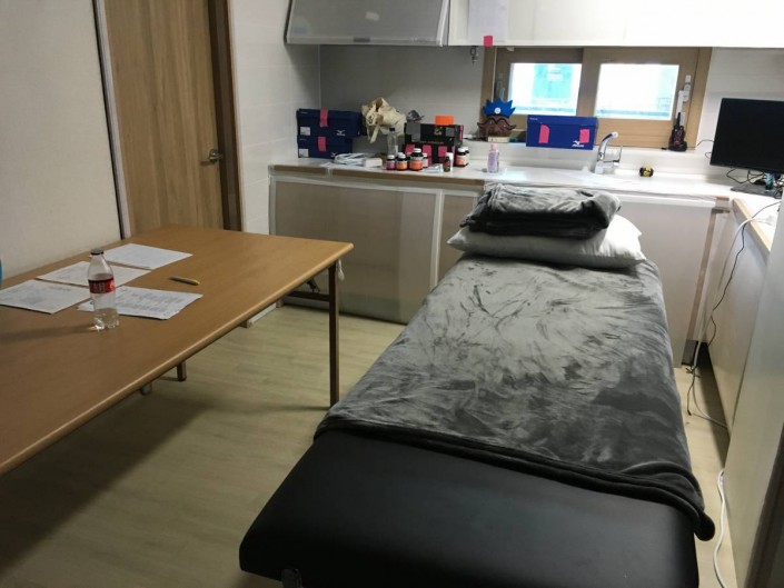 Тут же - массажный стол. Есть общий зал, но там массажируют в основном мужчин, потому что слишком высокая проходимость.